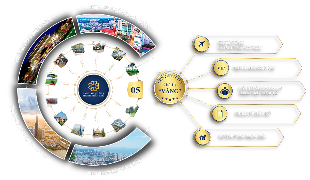 Tọa lạc ngay trung tâm đô thị sân bay Long Thành, Century City còn là tâm điểm của 7 thành phố lớn trong vùng kinh tế trọng điểm phía Nam và liền kề nhiều khu công nghiệp lớn như Amata, Long Thành, Bình Sơn, Lộc An, khu công nghệ cao Techno Park Việt Nam – Hàn Quốc quy mô 300 ha….