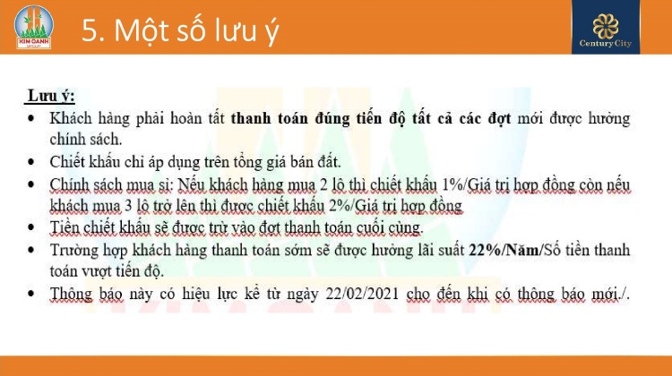 Bên trên là những chính sách mới của dự án Century City. Quý khách hàng lưu ý thời gian áp dụng từ Từ ngày áp dụng chính sách này từ 22/02/2021 - 22/04/2021.