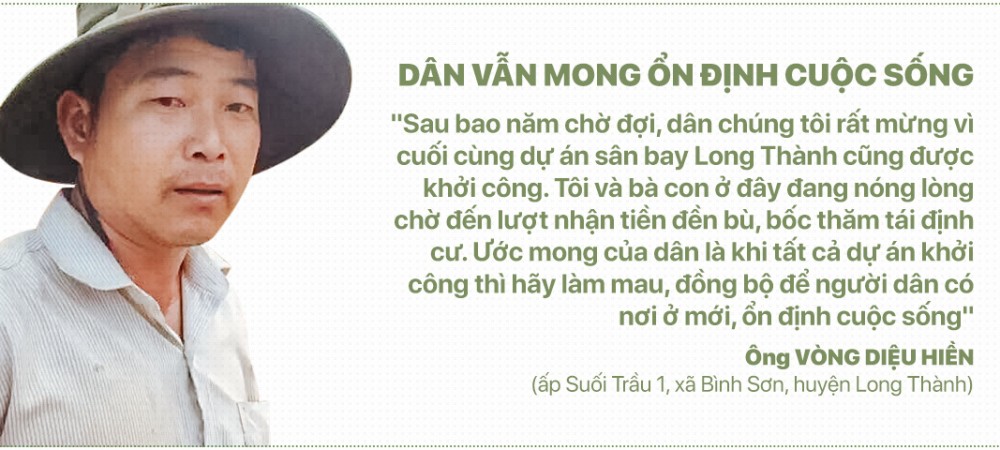 Là một trong số hàng ngàn người phải nhường mảnh đất mình từng gắn bó máu thịt chờ đến nơi ở mới, ông Đinh Xuân Khánh (72 tuổi) tâm sự: "Tôi đến đây khai hoang mưu sinh từ ngày đất nước thống nhất. Mấy đời sống ở đây giờ ra đi ai không buồn, nhưng làm sân bay là chuyện chung của cả nước nên phải chấp hành".